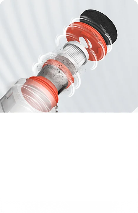 The upgraded cyclonic dust separation system confines fine dust and mites within the dust compartment, preventing filter blockage, ensuring clean exhaust air, and reducing secondary pollution.
