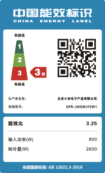 [2]由测试中心出具检测报告扩展,试验编号KFR-26GW / F3W1SZ18112301,实际数据会因具体测试环境,而略有差异。