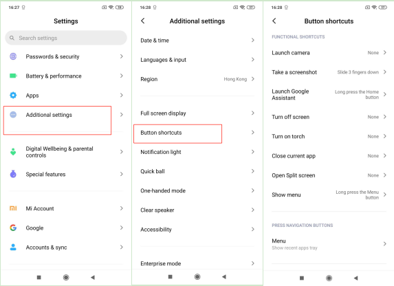 Método de configuración específico: Configuración>> Configuración adicional>>Atajos de botón, seleccione atajos de botón.