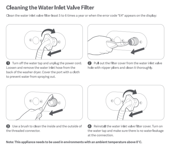 3. Asegúrese de que el filtro de malla de la manguera de entrada de agua no esté obstruido;