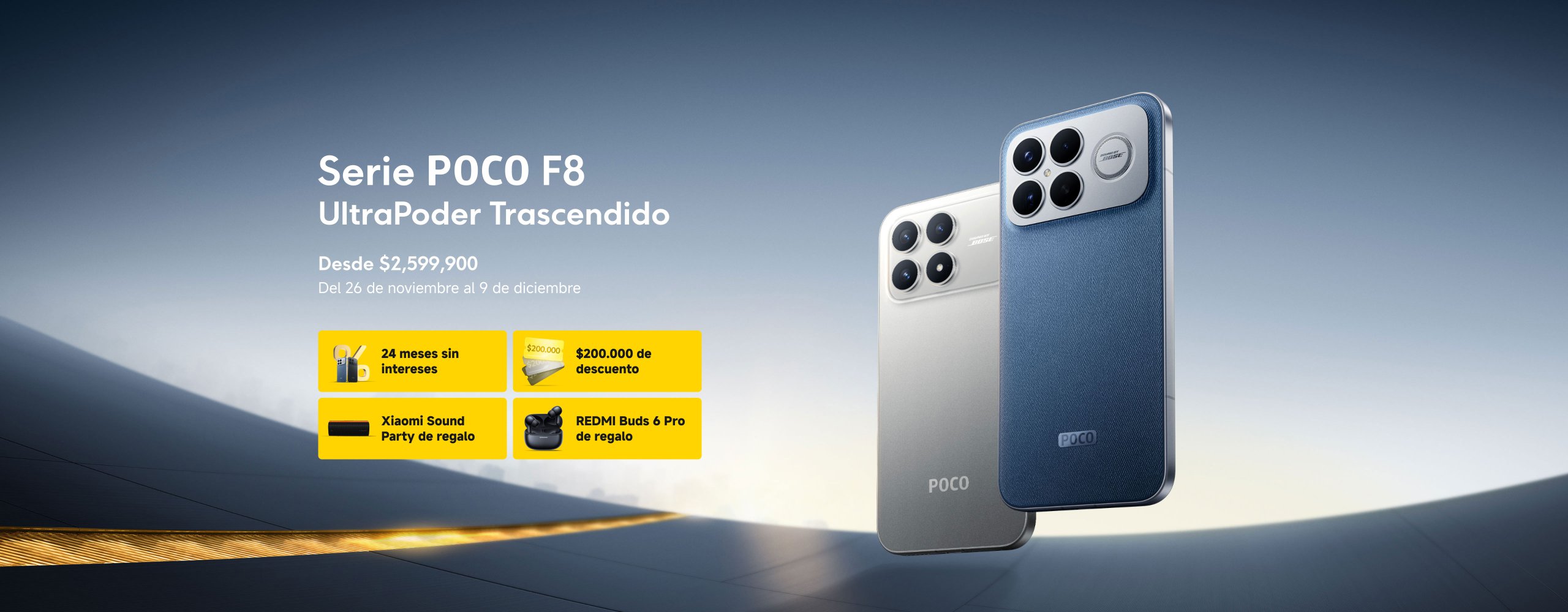 Compra Serie POCO F8 y recibe Xiaomi Sound Party y REDMI Buds 6 Pro.