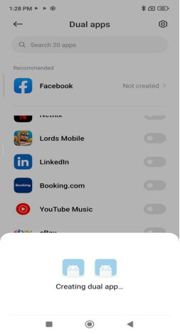 Configuración-Aplicaciones duales-seleccione la APLICACIÓN , elija la aplicación para encenderla. Actualmente, las aplicaciones duales están disponibles para la mayoría de las aplicaciones, excepto las aplicaciones del sistema, que tardarán un poco más en abrirse la primera vez.