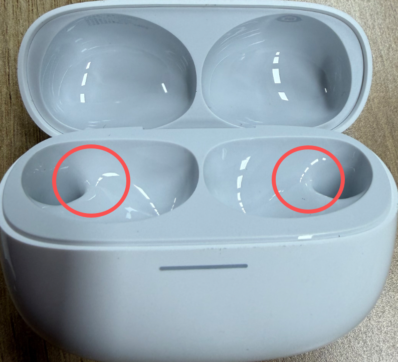2. Comprueba si los contactos de carga del estuche de carga o de los auriculares están sucios. Limpia cuidadosamente los puntos de contacto tanto de los auriculares como del estuche de carga para garantizar un contacto adecuado.