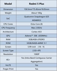 R: Aquí están las especificaciones de Redmi5 Plus: