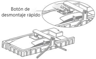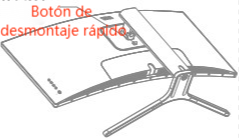 8. P: ¿Cuál es el peso neto de Mi Curved Gaming Monitor 34"? A: 8kg. 9. Q: ¿Cuánto tiempo tienen el cable de alimentación y el cable DP? R: Ambos son 1.5M. 10.Q:¿Cómo reemplazar si el cable de alimentación y el cable DP están dañados? R: Si el cable de alimentación o el cable DP están dañados, deben reemplazarse con un cable dedicado o con un componente dedicado comprado a su fabricante o posventa. 11. P: ¿Cómo colgar el Mi Curved Gaming Monitor 34"? R: 1) Marque el botón de liberación rápida para quitar la base;