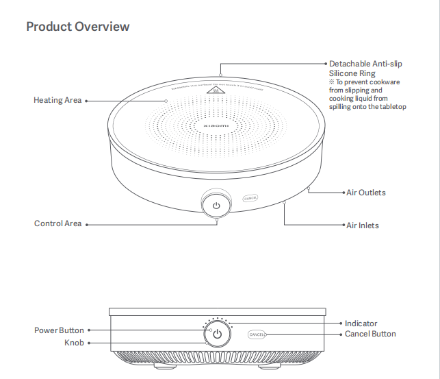 La apariencia de la Xiaomi Induction Cooker Lite se puede referenciar en la imagen adjunta. Si hay discrepancias entre el producto real y la imagen, consulte el producto real.