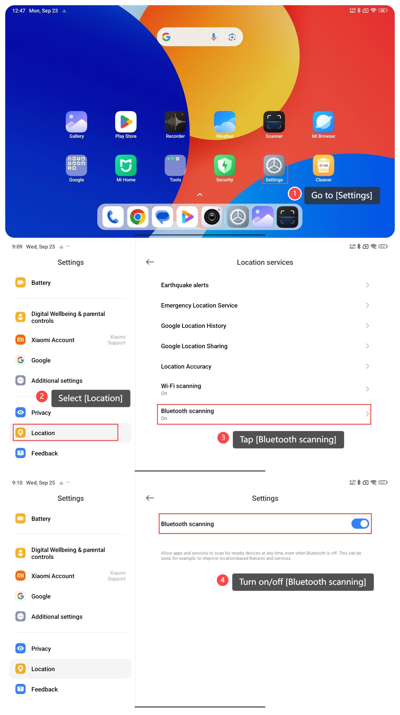 Para activar/desactivar el escaneo Bluetooth en su tableta, consulte los siguientes pasos: