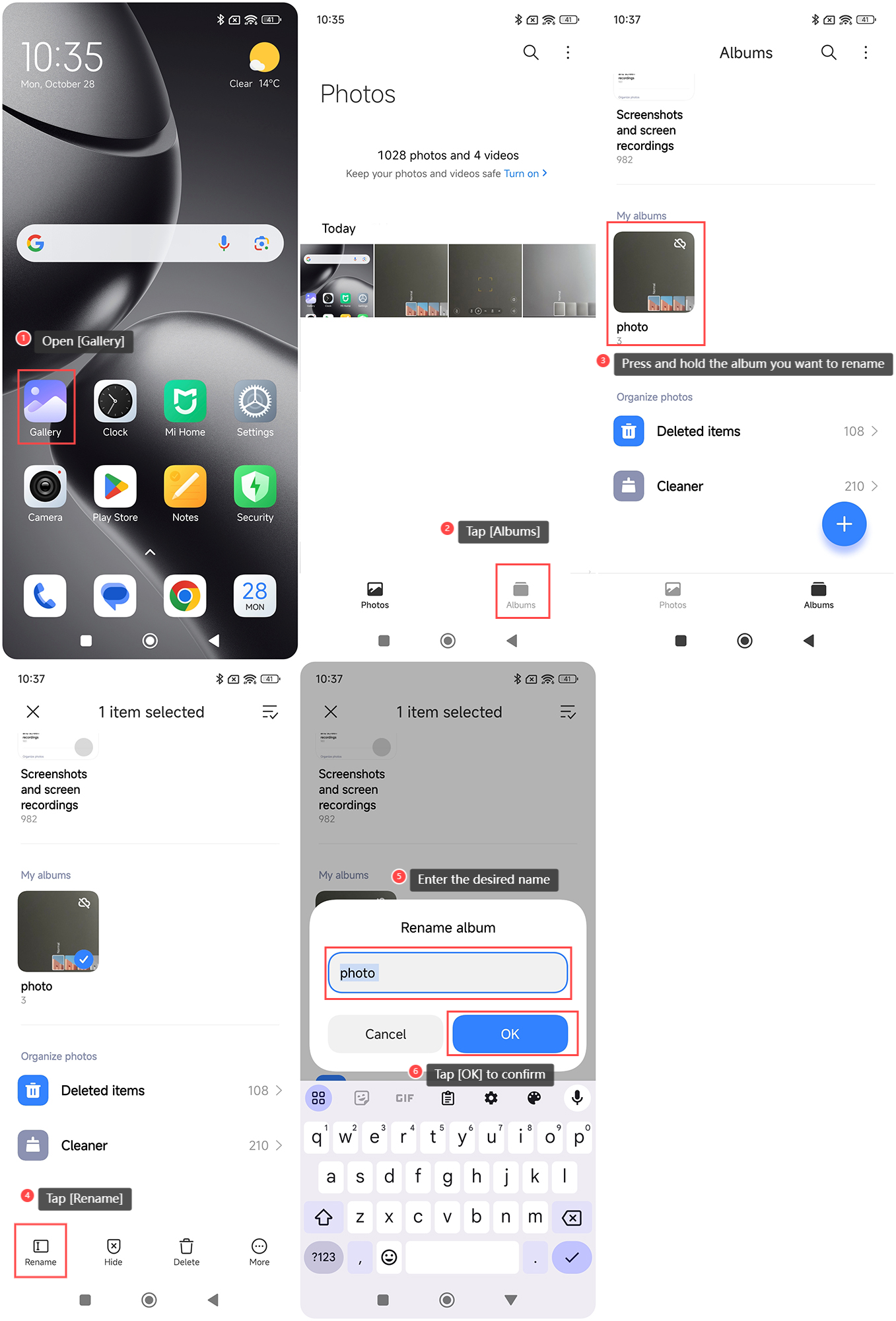 Para cambiar el nombre de un álbum en el Xiaomi 14T, consulte los siguientes pasos: