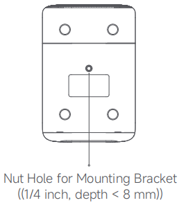 R: Soporte. Hay un orificio para tuercas para el soporte de montaje. Si se requiere montaje, compre un soporte de montaje compatible con tornillos que cumplan con las siguientes especificaciones: un diámetro de 1/4 de pulgada y una longitud de menos de 8 mm. Vaya a [Configuración>> [Proyector] >> [Tipos de proyector] >> [Proyección frontal - Montaje de células]/[Proyección trasera - Montaje de células].