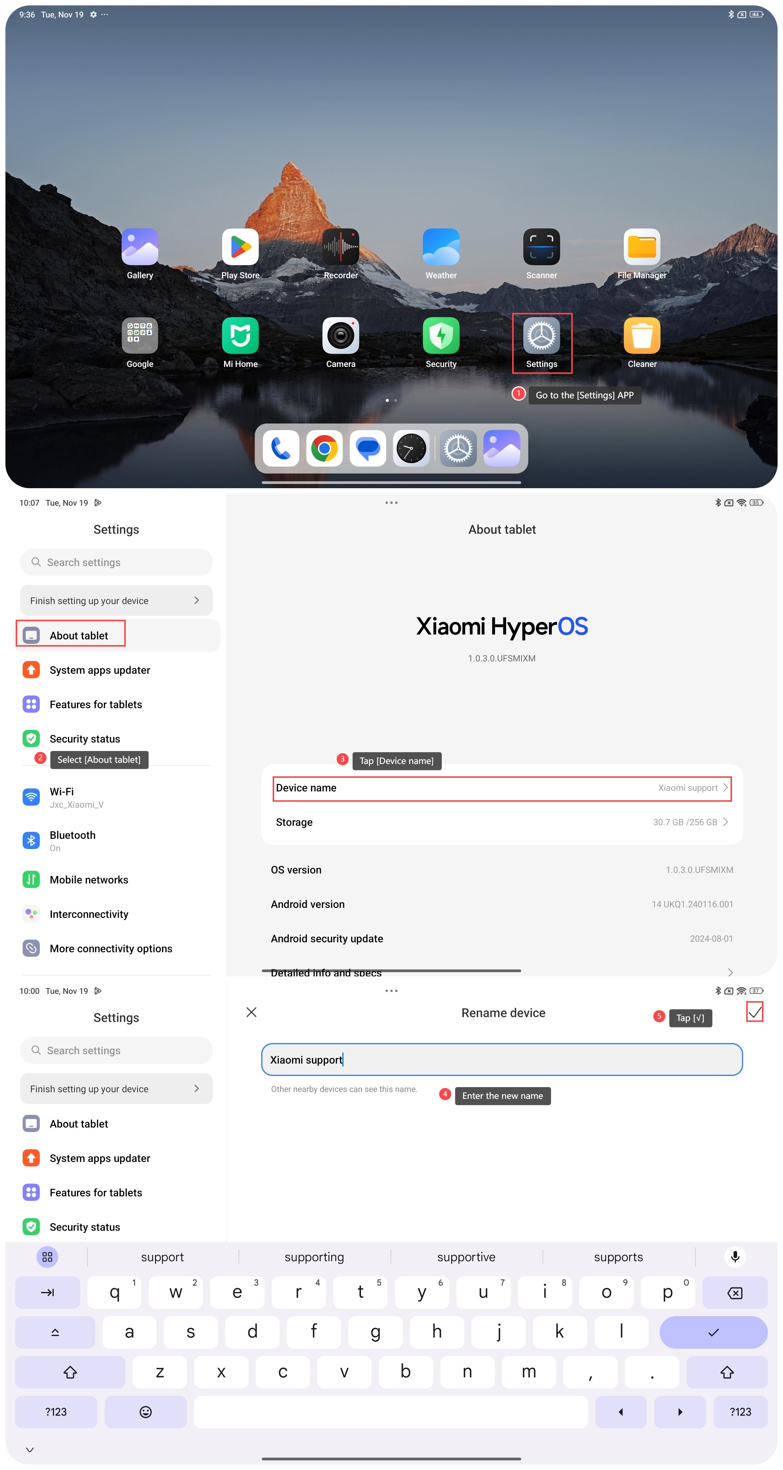 4. Puede ver una pantalla que le permite editar el nombre del dispositivo. Ingrese el nuevo nombre que desea para su tableta;