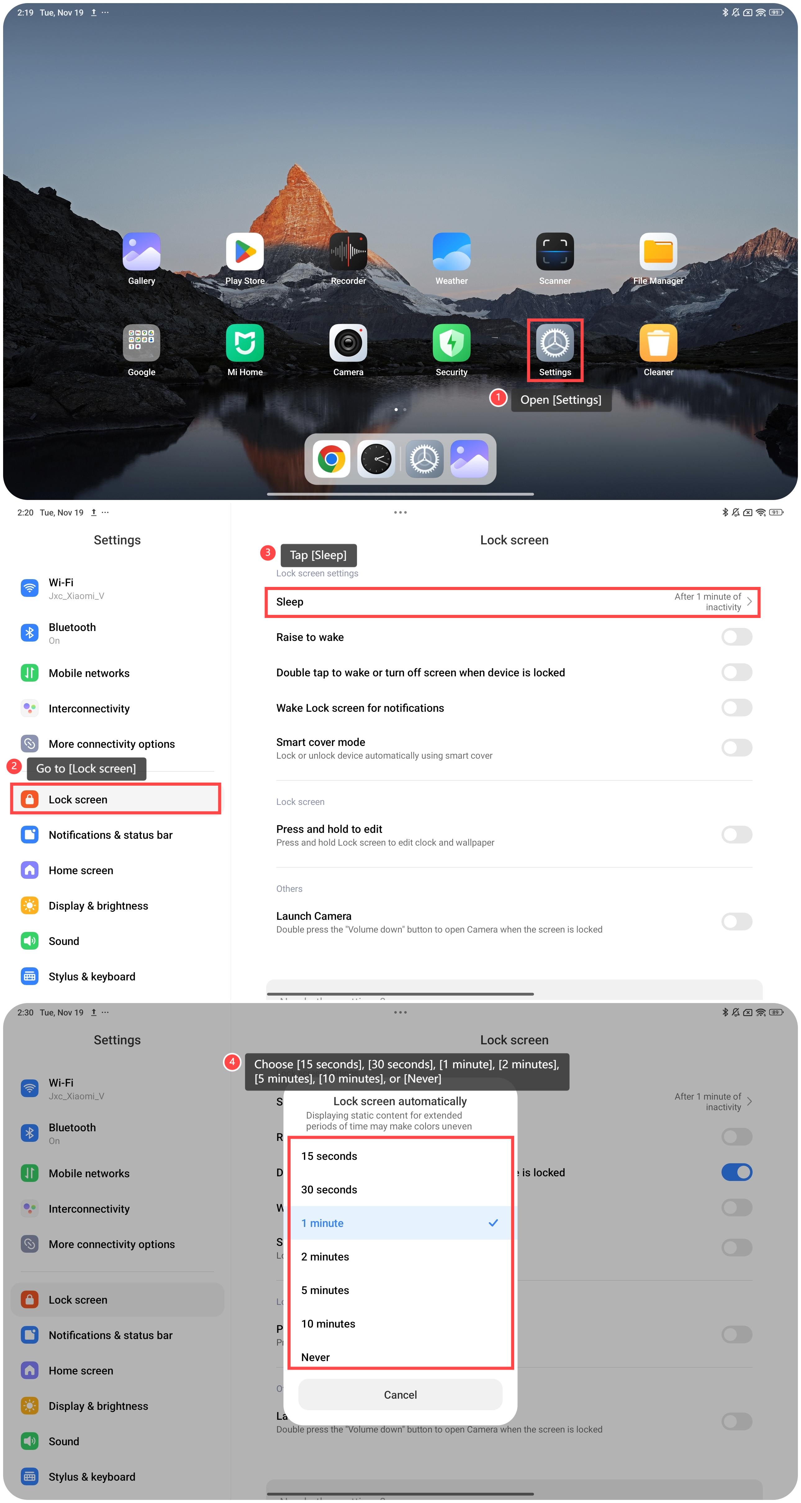 El tiempo de suspensión de la Redmi Pad Pro 5G te permite personalizar la duración antes de que la pantalla se apague después de la inactividad. Esto ayuda a reducir constantemente el uso de energía durante las horas de sueño y minimiza el estrés de la batería, mejorando su longevidad general. También bloquea automáticamente la pantalla después del tiempo de suspensión establecido, protegiendo sus datos del acceso no autorizado si el dispositivo se deja desatendido.