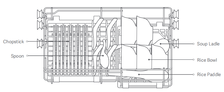 2. La bandeja izquierda del estante de platos superior se eleva un nivel, lo que permite la colocación de platos grandes de menos de 10 pulgadas, como platos de pescado;