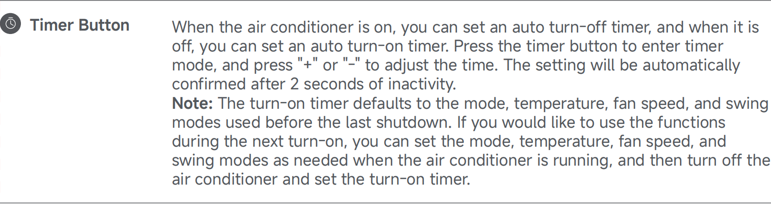 1. La duración que se muestra en el control remoto y en la pantalla del aire acondicionado puede variar;