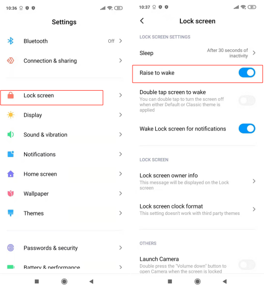 Konkrétní metoda nastavení: Nastavení>> Zamykací obrazovka >> Zvednutím probudit vyberte "Raise to wake".