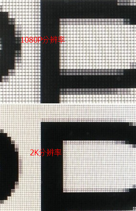 Ve srovnání s 2K a 1080P, když je velikost nezměněna, efekt zobrazení je jasnější (to znamená, že čím vyšší je PPI, tím jasnější je efekt zobrazení). Jak je znázorněno níže: