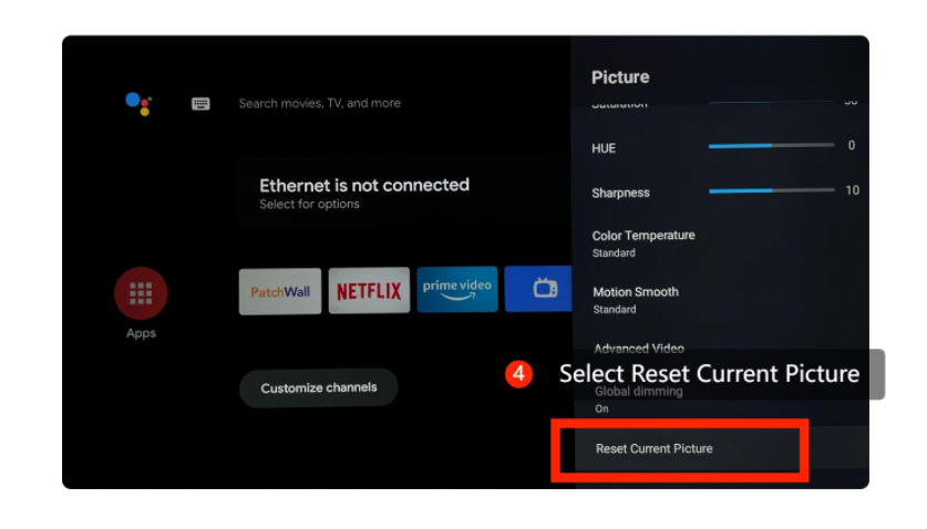 (2). Resetujte nastavení obrazu: Přejděte do nabídky [Nastavení] >> [Předvolby zařízení] >> [Obraz] >> [Obnovit aktuální obraz] >> [Ano].