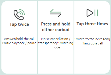 | Nettogewicht eines einzelnen Ohrhörers: ca. 4,9 g | |