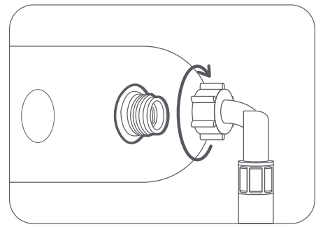(2) Verbinden Sie das andere Ende des Wassereinlassschlauchs mit dem Wassereinlassventil der Waschmaschine und Trockner (am hinteren Ende) und ziehen Sie es im Uhrzeigersinn fest.