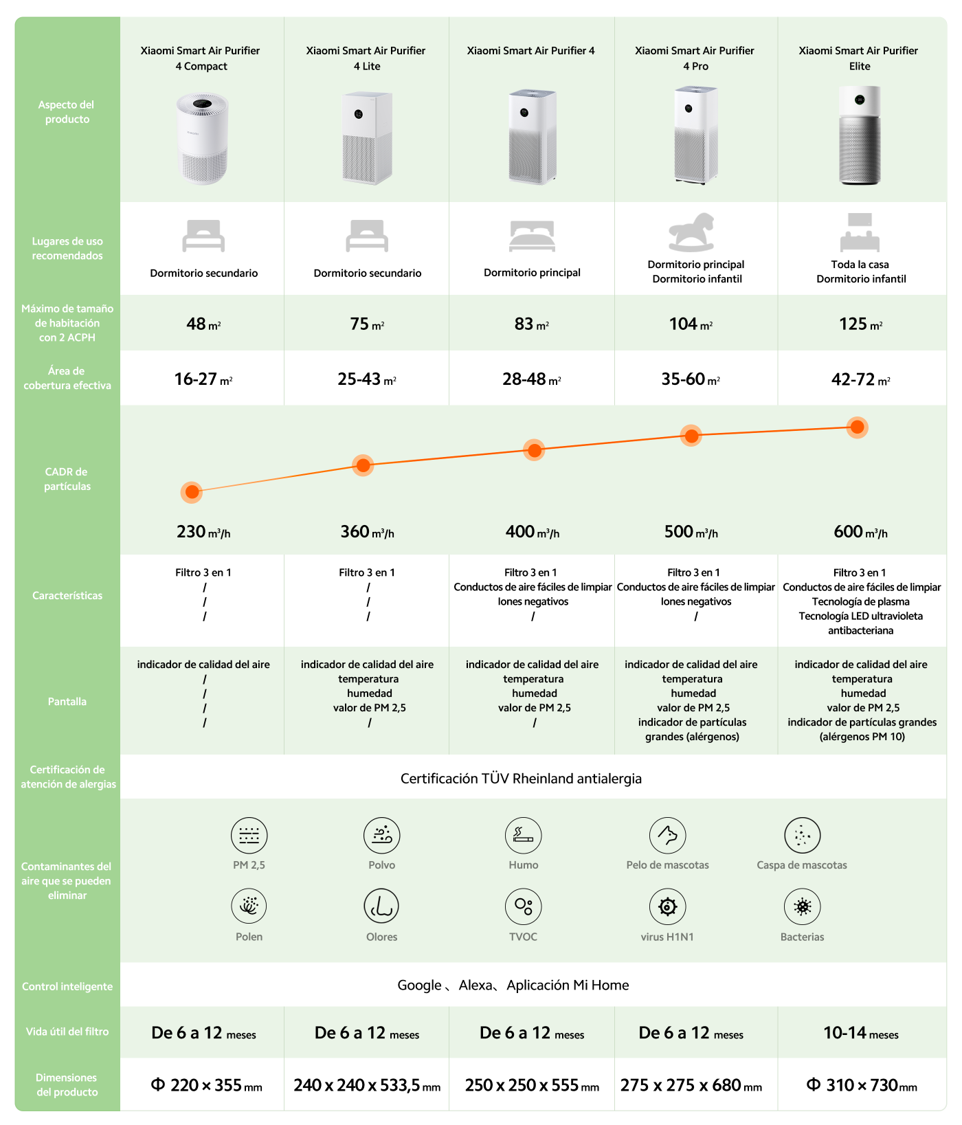 Purifica una habitación grande de 20 m² en unos 10 minutos