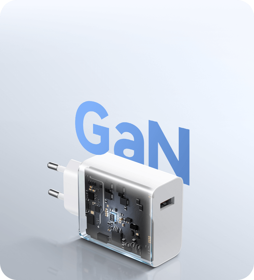 La tecnología de carga rápida GaN utiliza materiales semiconductores de 3.ª generación con alta conductividad térmica y gran resistencia al calor, permitiendo que el cargador sea ligero y compacto, al tiempo que ofrece mayor eficiencia en la conversión de energía y ocupando menos espacio cuando viajas.