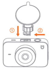 Inserte el soporte hacia abajo en la ranura del soporte en la parte superior de la Dashcam y empújelo hacia la izquierda. La conexión se completará cuando escuche el sonido de "clic".