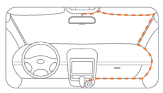 Como se muestra en la siguiente figura, alinee la línea de carga a lo largo de la parte superior del vidrio protector delantero, el pilar A y el compartimiento de pasajeros hasta la boca del encendedor de cigarrillos. Después de conectar el cabezal de carga del automóvil, conéctelo a la boca del encendedor de cigarrillos para tomar energía. La posición de la boca del encendedor de cigarrillos puede ser diferente en diferentes vehículos. La figura es sólo para referencia. Puede usar la barra de palanca en la caja de embalaje para enterrar la línea de carga del automóvil en la tira de goma del pilar A.