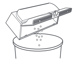 1. Abra la tapa del depósito de polvo desde la posición de la flecha del depósito de polvo y tire la basura.