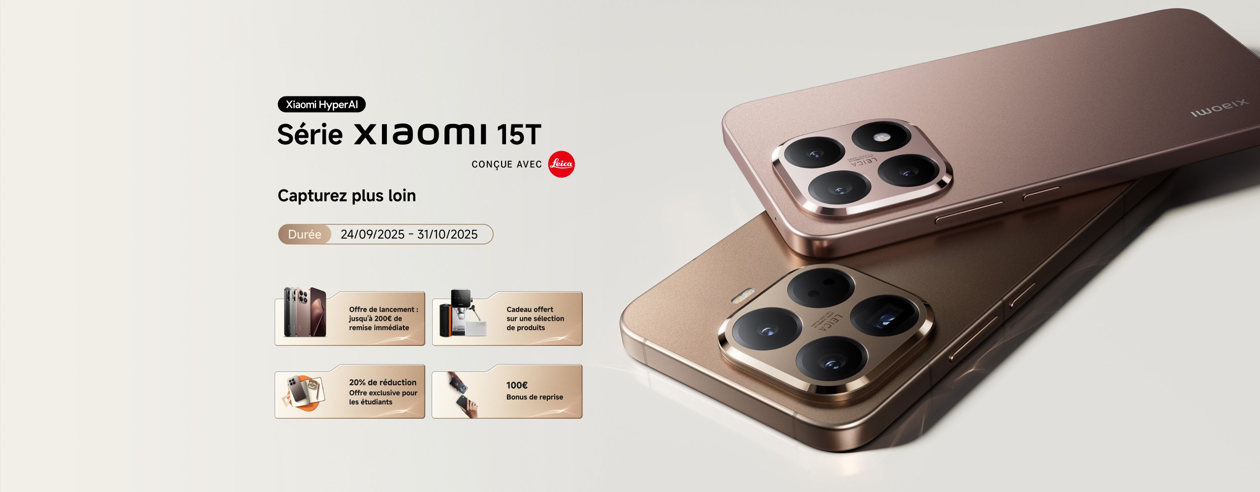 Pour l'achat d'un smartphone de la série Xiaomi 15TAbonnez-vous pour recevoir les dernières nouvelles de Xiaomi