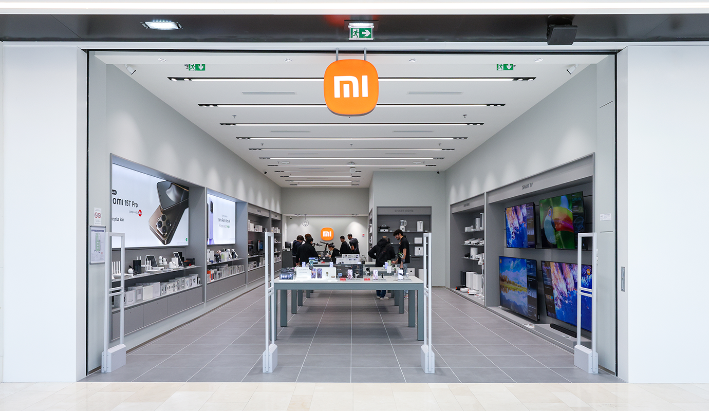 Intérieur d'un magasin de vente au détail d'électronique moderne, présentant plusieurs modèles de smartphones, d'appareils domestiques et de voitures électriques, les produits étant soigneusement disposés sur des tables et des étagères, avec un fond de murs minimalistes et d'écrans d'affichage.Dans le magasin Xiaomi, divers produits électroniques sont exposés, une voiture miniature se trouve au centre et le logo Xiaomi est accroché au mur.L'intérieur d'un magasin d'électronique moderne, présentant divers appareils électroniques et accessoires, des clients examinant les produits, un grand écran publicitaire sur le mur.