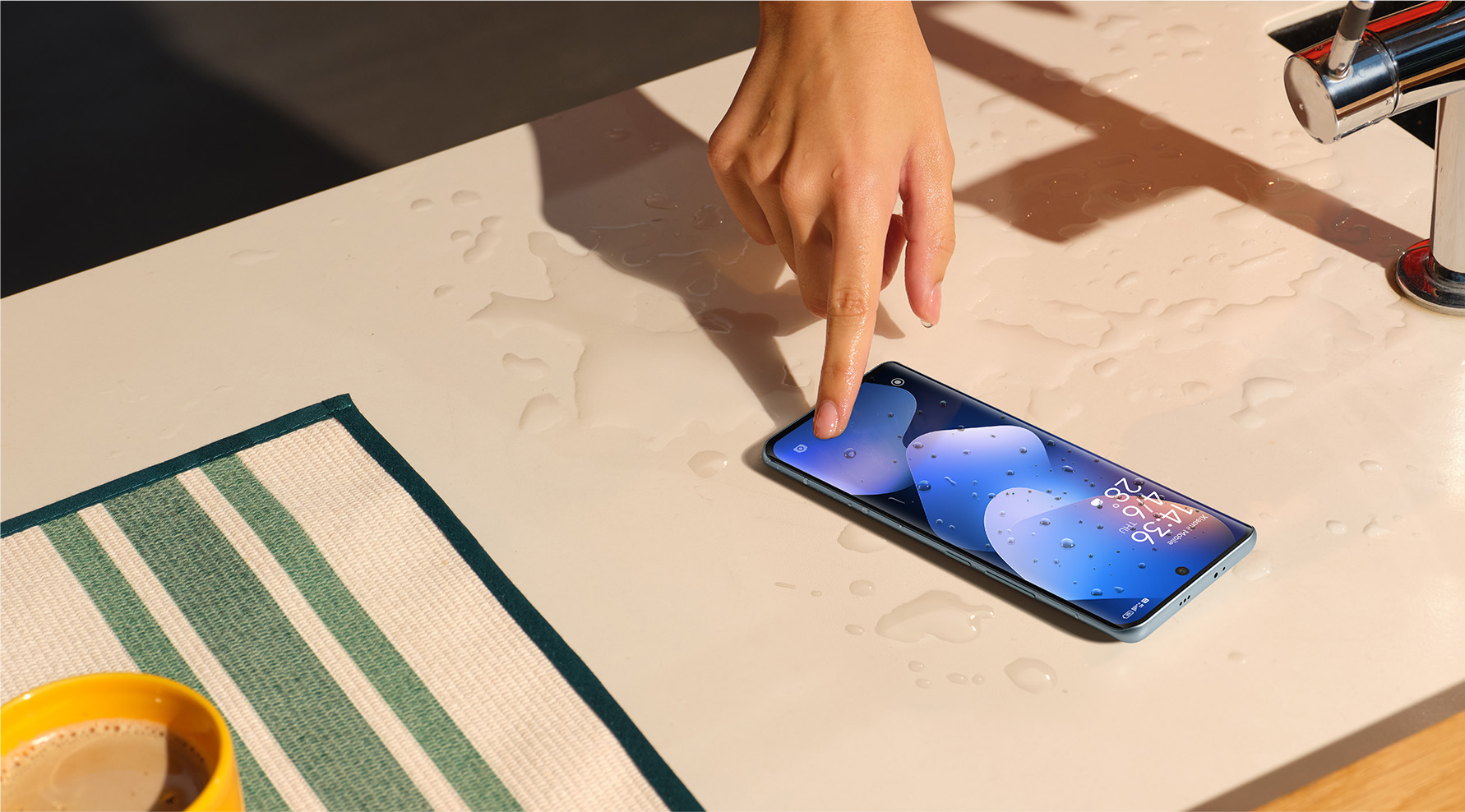 Même lorsque vos mains sont mouillées ou grasses, l’écran reste sensible à votre toucher.