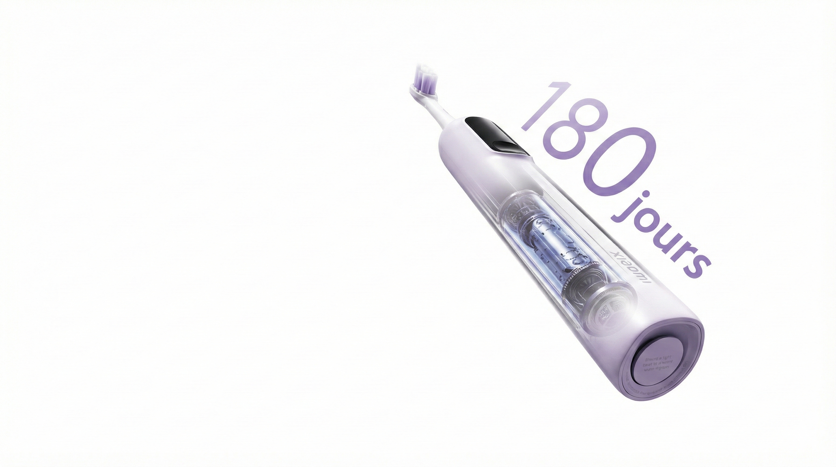 * 180 jours : avec une charge complète, la brosse à dents peut être utilisée pendant environ 180 jours si elle est utilisée deux fois par jour pendant deux minutes en mode Nettoyage doux. Données testées par Vkan Certification & Testing Co., Ltd. (CVC). N° de rapport : WTS2024-23024.