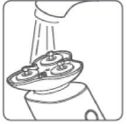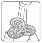 5. Rincez le support de la tête du rasoir sous le robinet (il est recommandé d'utiliser de l'eau chaude pour rincer et de ne pas utiliser de serviette ou de papier essuie-tout pour essuyer la tête du rasoir) ;