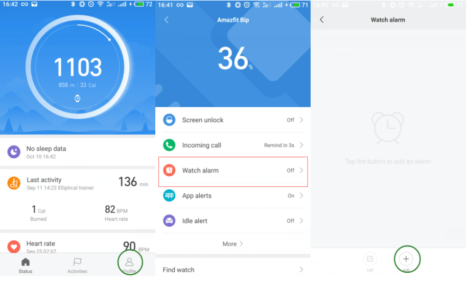 2) Appuyez sur Mes dispositifs--- Amazfit Bip et vous verrez alors les Paramètres du réveil.
