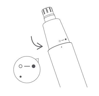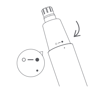 4. Une fois que l'ensemble de tête de coupe est sec à l'air, alignez « ○ » dessus avec « • » sur le corps principal et poussez-le dans le corps principal. Tournez-le dans le sens des aiguilles d'une montre jusqu'à ce que « ● » s'aligne avec « • » sur le corps principal et que vous entendiez un clic, indiquant qu'il est installé en place.