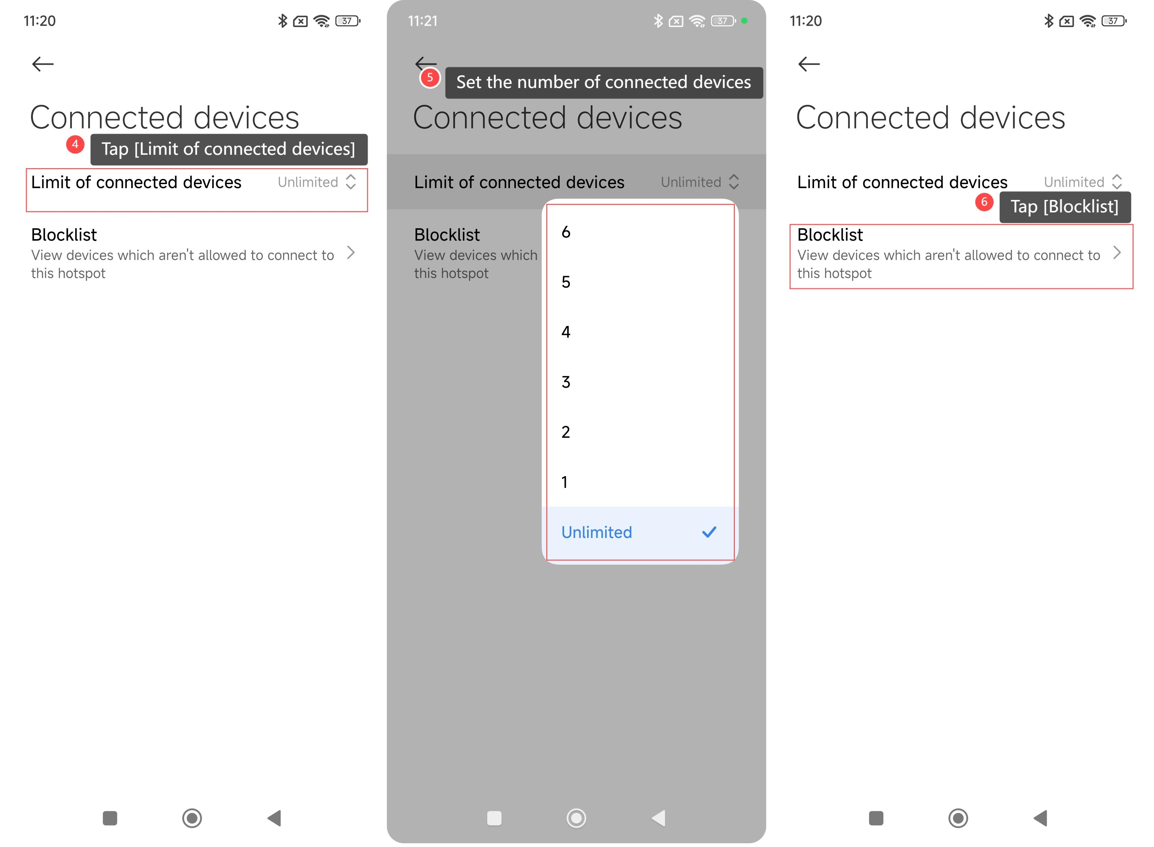 5. Vous pouvez définir le nombre d'appareils connectés ;
