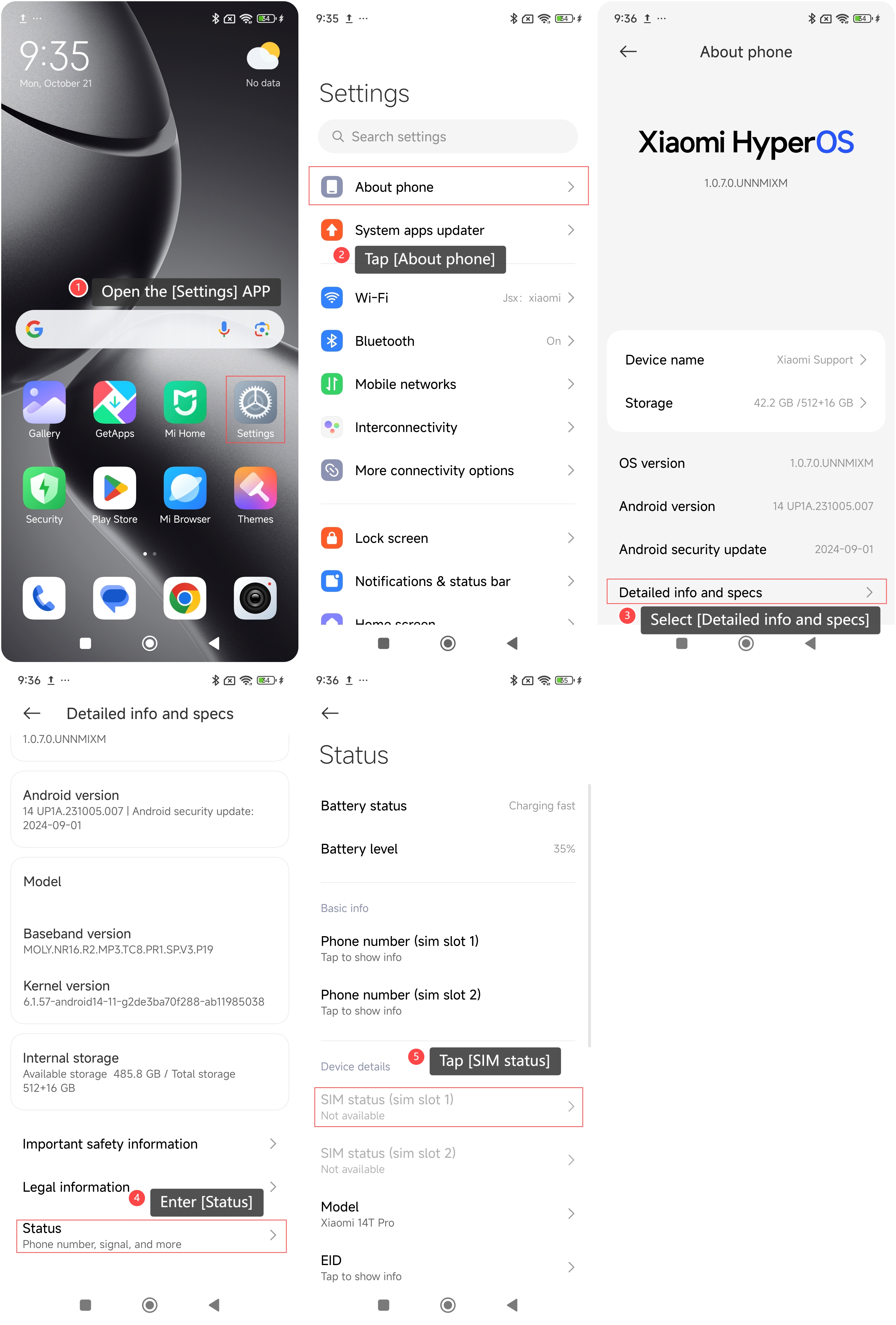 Le Xiaomi 14T Pro prend en chargela vérification de l'état de la carte SIM, ce qui peut vous aider à vous assurer que votre appareil est correctement connecté au réseau, à surveiller votre utilisation des données et à éviter les changements inattendus en gardant une trace des paramètres de votre carte SIM.