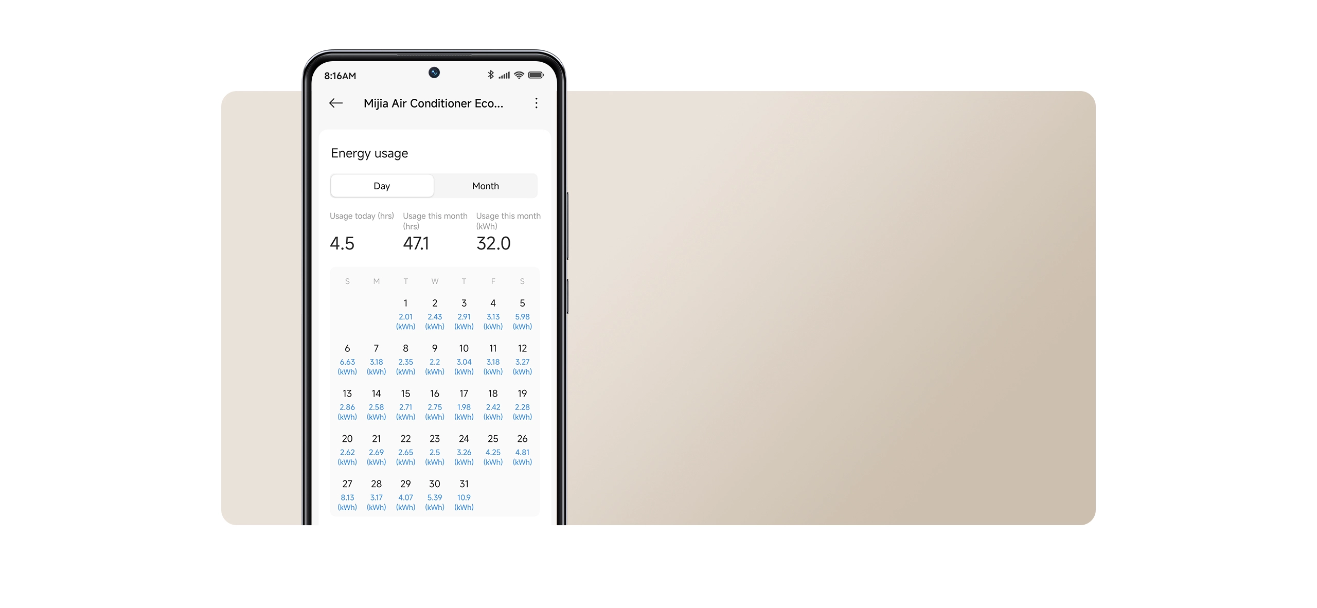 In-app energy usage monitoringTrack your energy consumption in real time with the Xiaomi Home app and get actionable insights to save energy and improve efficiency.4