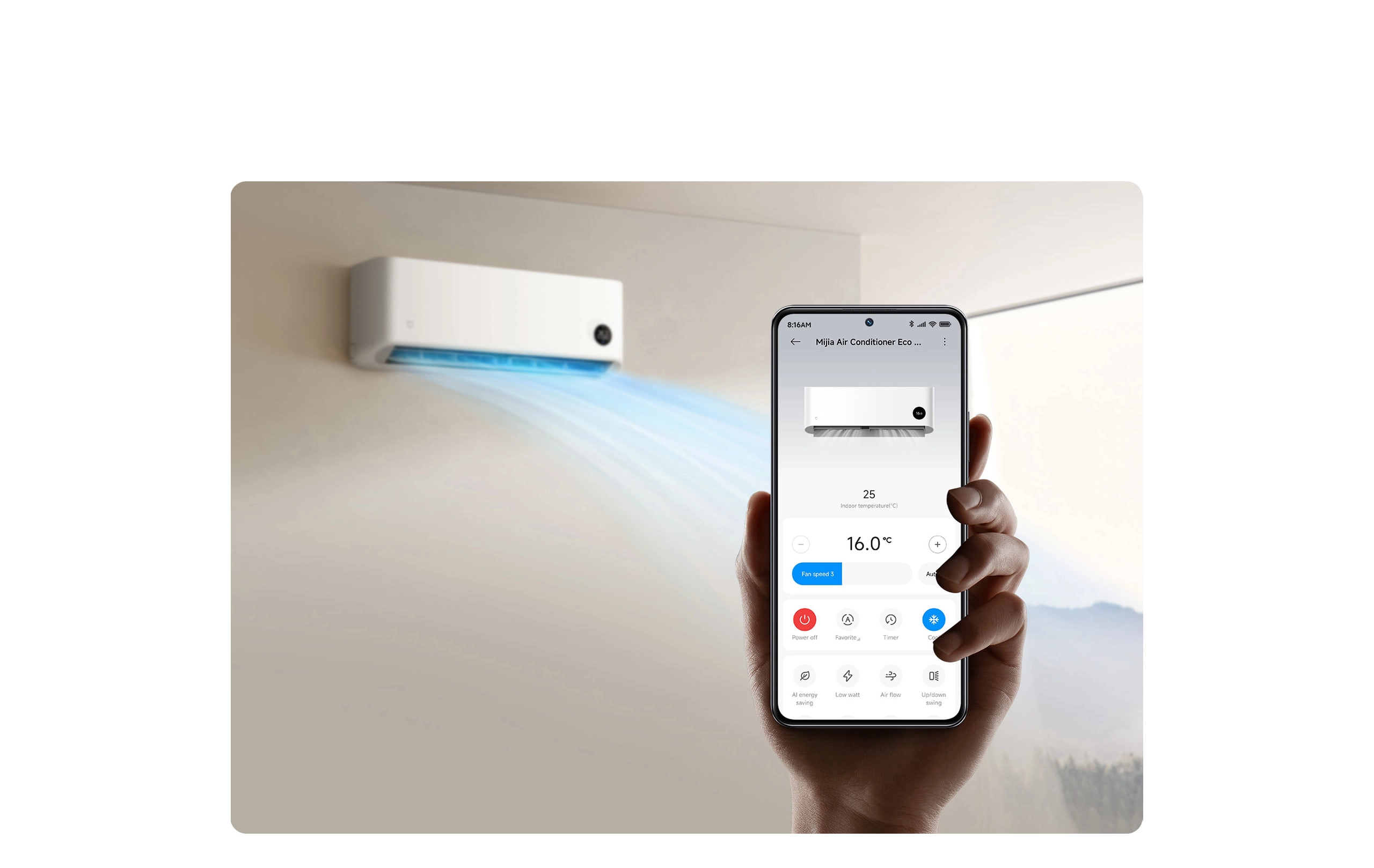 1. This is the recommended area for a standard house. For rooms with direct sunlight, extra-high ceilings, or simple steel structures, the installed capacity should be increased accordingly.2. According to Intertek's test reports, models ASH-18WO/N2C2-EU achieved 20.6% energy savings, respectively, with and without Mijia AI Energy Saving Mode. Tested under the following temperature: indoor room 32°C, indoor wall 30°C, outdoor 35°C; duration: 3 hours. Actual performance may vary depending on room size, ambient temperature, installation, and user habits.3. According to Intertek's test reports, under specified initial conditions, the indoor unit outlet temperature decreased to below 22°C within 30 seconds in cooling mode (outdoor: 35°C DBT; indoor: 27°C DBT and 19°C WBT), and increased to above 37°C within 1 minute in heating mode (outdoor: 7°C DBT and 6°C WBT; indoor: 20°C DBT). Actual performance may vary depending on environmental conditions, installation quality, and user settings.4. The usage data shown is based on a beta test conducted with a user in Europe. This information is provided for illustrative purposes only. Actual performance and energy consumption may vary significantly depending on factors such as climate, insulation, room size, user behaviour, and installation conditions. No rights can be derived from this data.5. Product names, interfaces and functions shown in images are for illustrative purposes only. Please refer to actual usage.6. Google and Google Home are trademarks of Google LLC.7. Google Assistant voice control requires compatible devices. These devices are sold separately.8. Google Assistant is not available in certain languages and countries. Please refer to Google Assistant official website for more info.9. Some apps, content and features may not be available in all countries. Subject to availability.10. Platforms and content may vary depending on your country or region. Please refer to the services available in your location for further details.11. Requires Xiaomi Home app to use.12. Linking requires compatible Xiaomi Home AIoT devices. Availability may vary by country or region. The actual situation shall prevail.13. The air conditioner operates on 2.4GHz Wi-Fi and is not compatible with 5GHz networks.14. Available via the Xiaomi Home app or remote control.15. Smart anti-condensation feature is intelligently activated without user intervention.*The images on the page are for illustrative purposes only. Actual product effects (including but not limited to appearance, colour, and size) and images (including but not limited to background, UI and illustrations) may vary slightly. Please refer to the actual product.*This product uses R32 refrigerant, which has a lower Global Warming Potential (GWP) compared to conventional refrigerants. While this contributes to reduce environmental impact in the cooling process, proper use and disposal remain essential.
