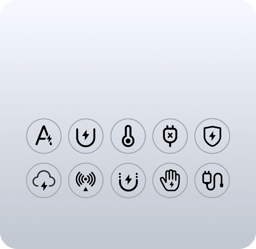 A fire&high-temperature resistant casing, combined with an intelligent temperature control system and 10 layers of safety protection, ensures charging safety.