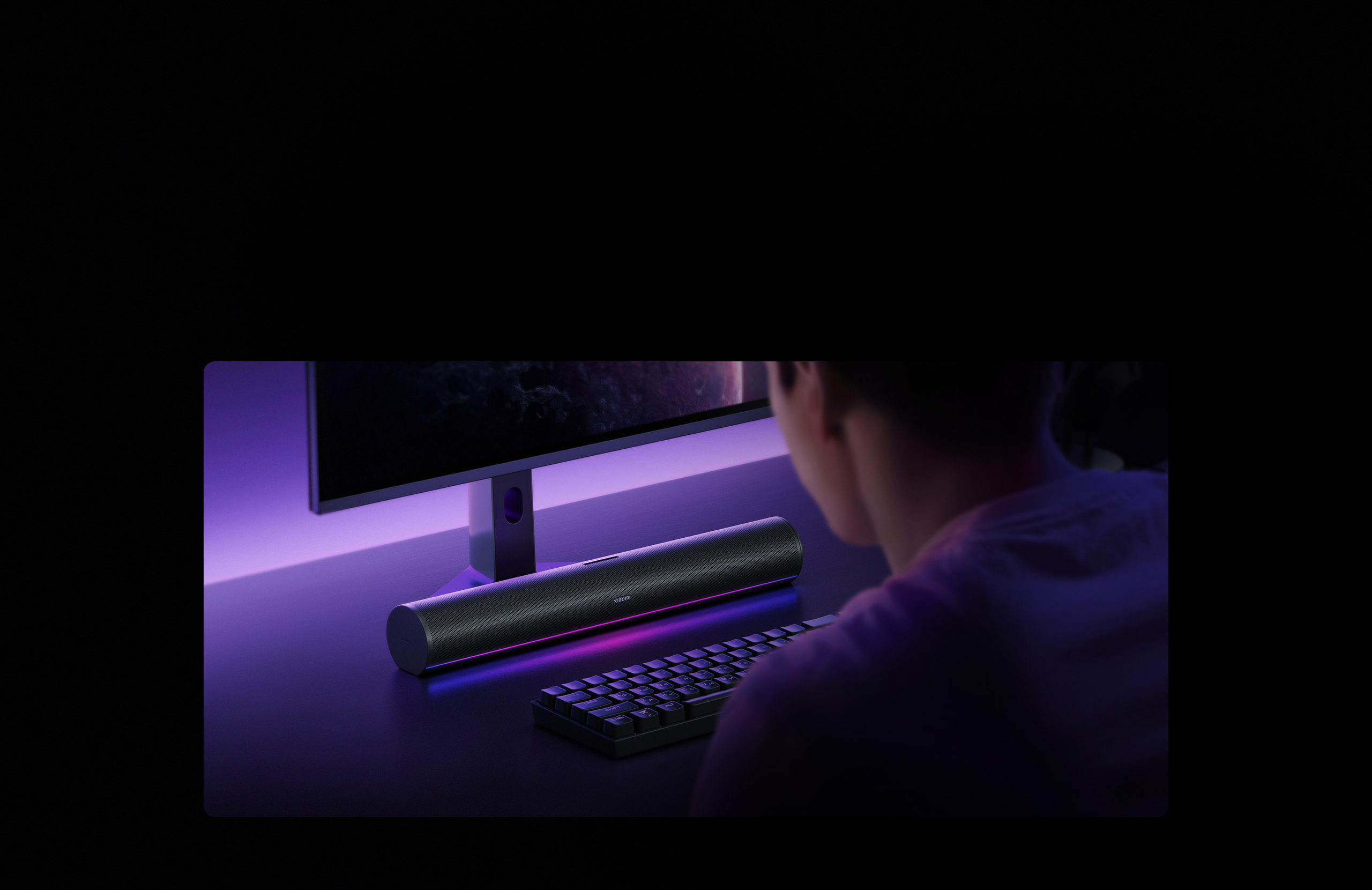 The main speaker and subwoofer use low-latency 2.4 GHz wireless technology for tightly synchronised, powerful bass performance. The minimalist design is enhanced with colourful RGB ambient lighting. Volume, sound effects and lighting automatically sync with the main speaker.