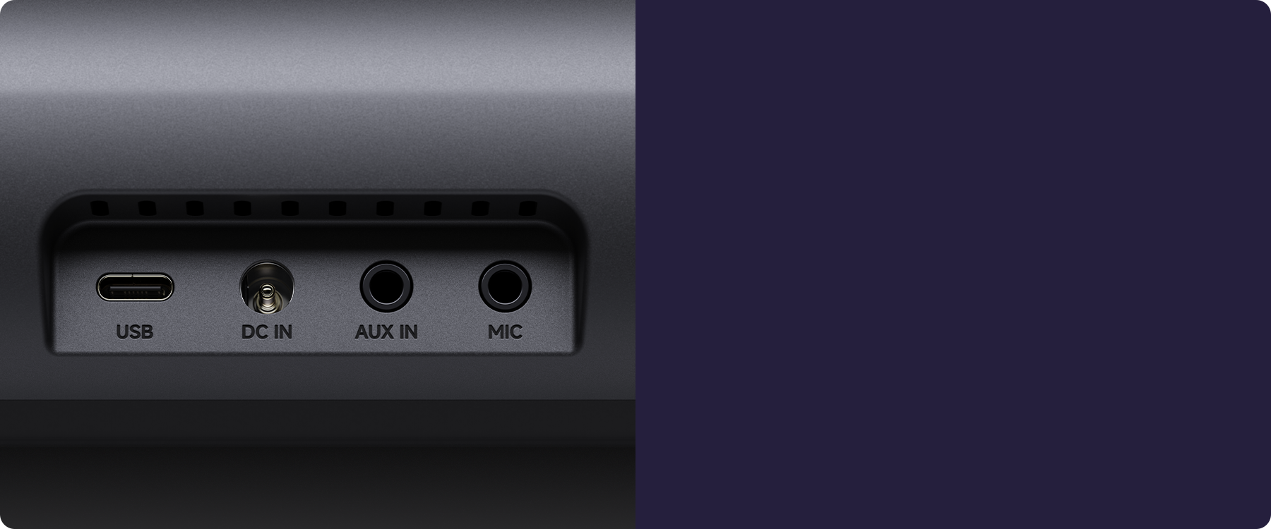 All essential ports included — USB, power, AUX-in, and microphone.