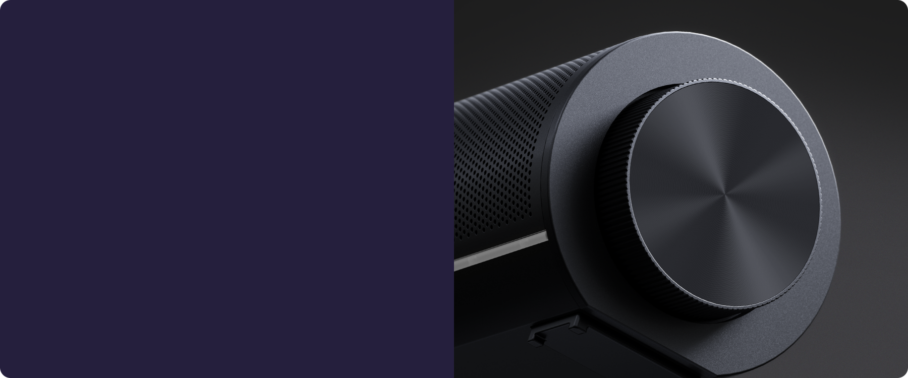 A multifunctional side knob on the main speaker, paired with two top-mounted buttons, integrates volume adjustment, sound mode switching, channel selection and ambient light control. The wireless subwoofer automatically syncs with the main unit's volume, sound and lighting settings. Simple to use and control with one hand.