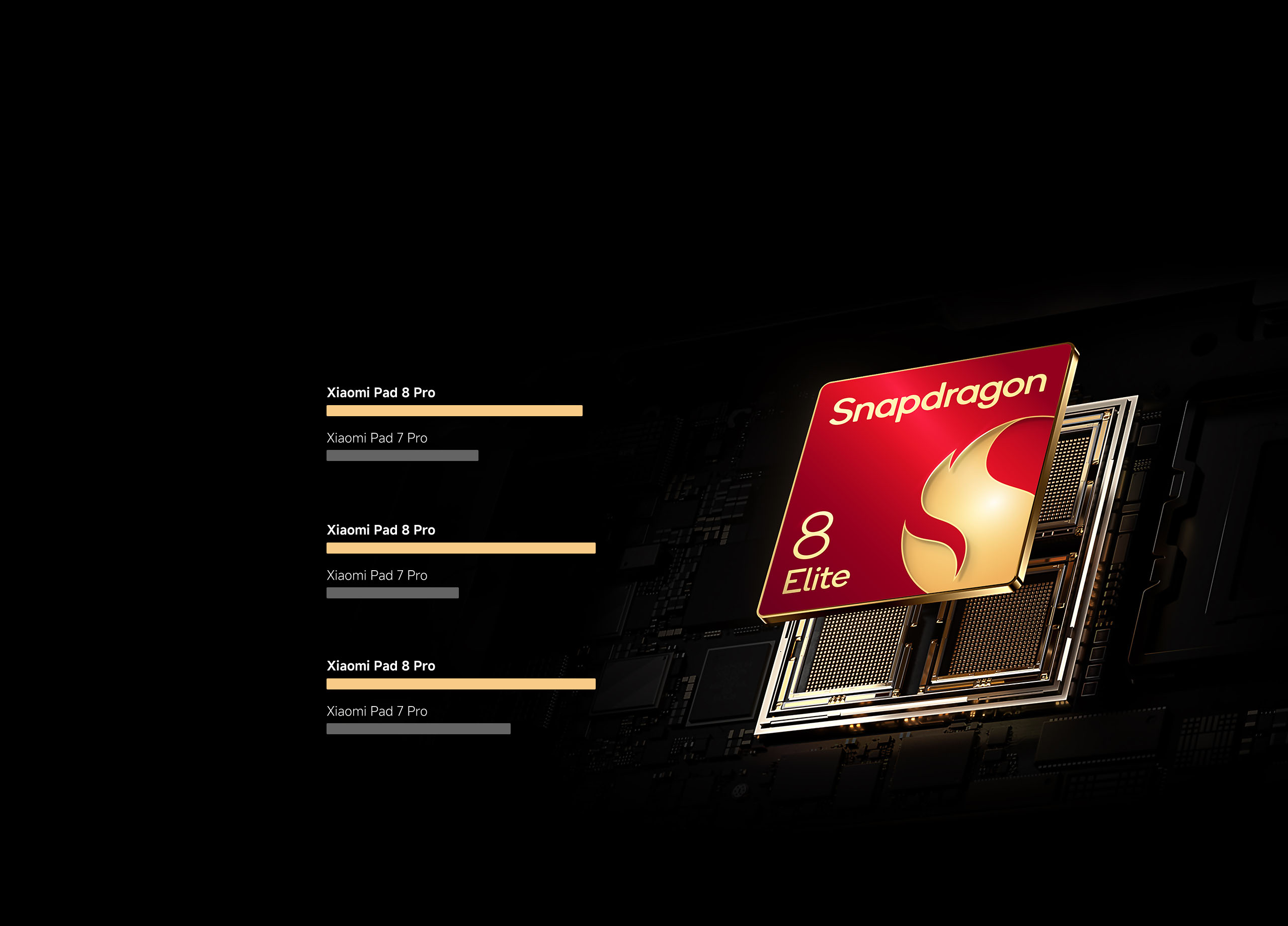 16. Data tested by Xiaomi Internal Labs. Comparisons were made with Xiaomi Pad 7 Pro: CPU performance was measured using Geekbench 6 (Multi-Core), and GPU performance using 1440P Aztec Ruins Vulkan.
