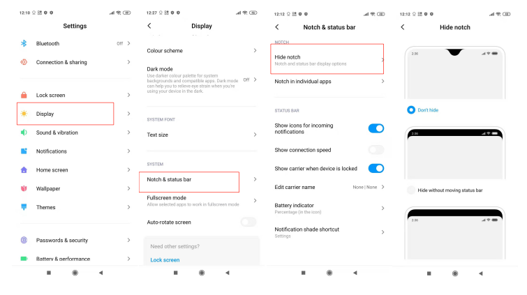Specific setting method: Settings>> Display >> Notch & status bar>>Hide notch, select"Hide notch".