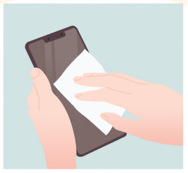 4.Gently wipe the screen, back shell and side of the phone in the same direction from top to bottom with a velvet free soft cloth.Do not wipe the phone hole, gap and LED area.