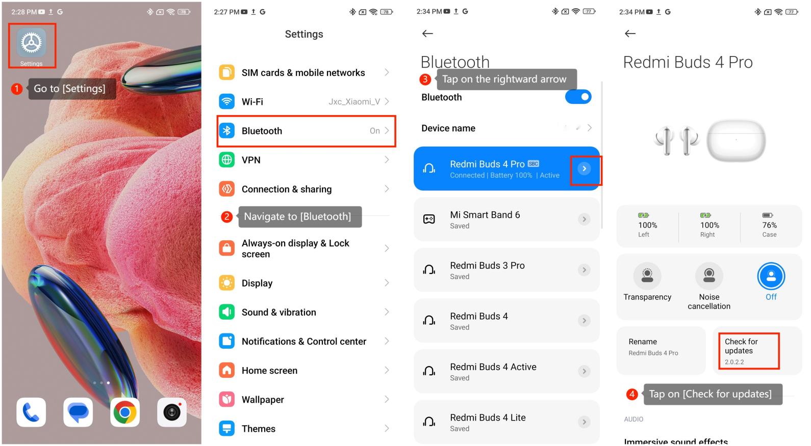 To check the update of the buds, please refer to the following steps: