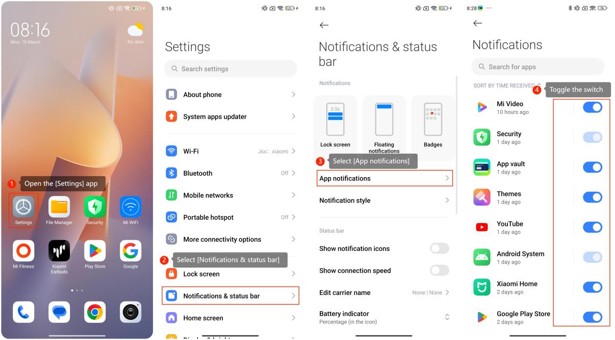 To manage app notifications on your phone with Xiaomi HyperOS, please refer to the following steps: