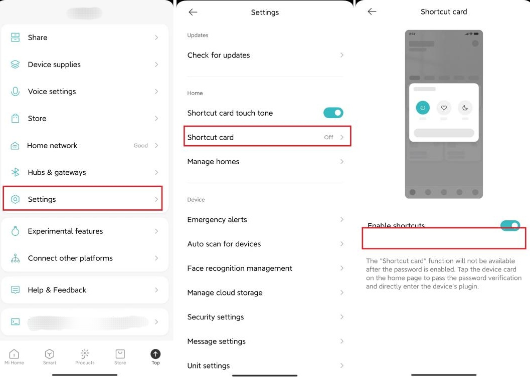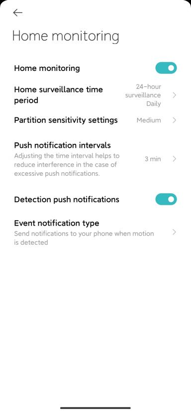 2. Go to Mi Home >> Tap [...] at the upper right corner >> select [Home Surveillance Settings] >> Tap [Partition Sensitivity settings] >> Select [High].