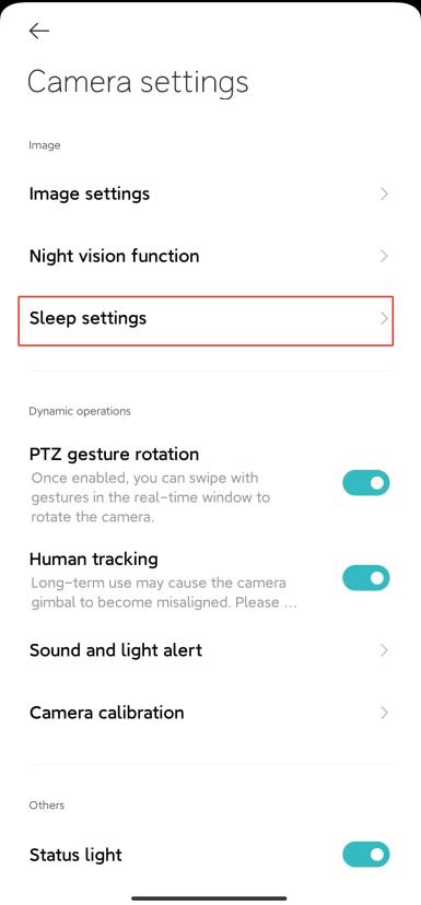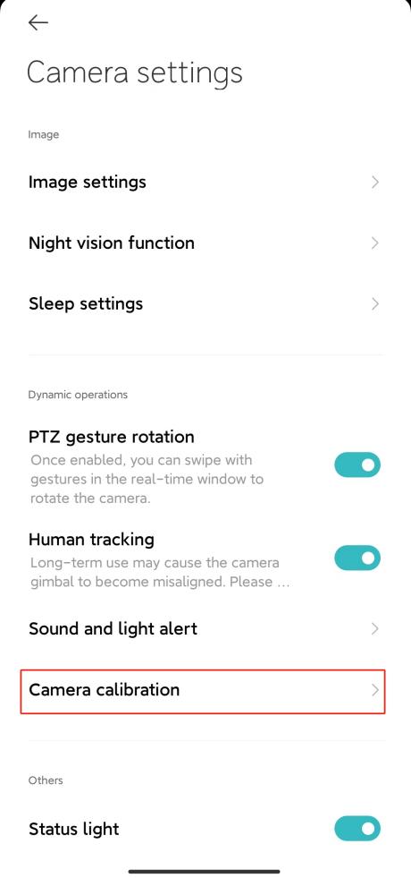 A: Mi Home App >> Select the Camera >> Tap [...] at the upper right corner >> [Camera settings] >> Turn off the [Human tracking] function.