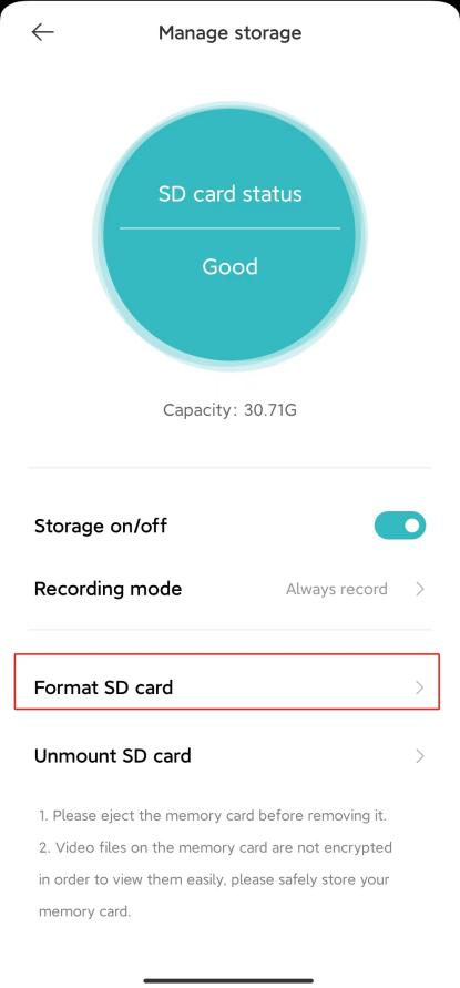 3. If it cannot be formatted in the Mi Home App or the problem persists after formatting, it is recommended to purchase a regular brand of camera-specific memory card.
